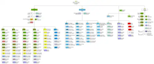 Está básicamente constituido por armas, ramas y servicios. Las armas integran las ramas y los servicios, que tienen relativamente limitada autonomía en la guerra por tierra, mar y aire.