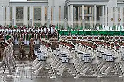 - ↑ «Yhlasly zenan harby gullukçylarymyz dabaraly harby ýörişde» (en ruso).