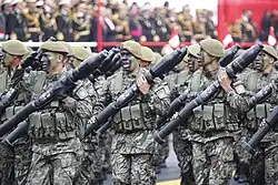 Las Fuerzas Armadas del Perú (FF. AA.) se constituyen por el Ejército, la Marina de Guerra y la Fuerza Aérea de dicha nación.[4] En su conjunto, dependen del Ministerio de Defensa.[5]