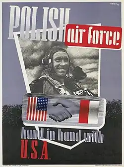 La Fuerza Aérea polaca también luchó en 1943 en Túnez (el Polish Fighting Team, conocido como el «circo de Skalski») y en bombardeos sobre Alemania (1940-1945).[4][19] En la segunda mitad de 1941 y principios de 1942, los escuadrones de bombarderos polacos constituían la sexta parte de las fuerzas a disposición del Mando de Bombarderos de la RAF (posteriormente sufrieron grandes pérdidas, con escasas posibilidades de reabastecimiento). Las bajas de tripulaciones polacas en el Mando de Bombarderos entre 1940 y 1945 fueron de 929 muertos; el total de bajas de tripulaciones polacas fue de 1803.[4] Al final se formaron ocho escuadrones de caza polacos en la RAF, que habían destruido 621 aviones del Eje en mayo de 1945.[20] Al final de la guerra, unos 19 400 polacos servían en la RAF.[21]