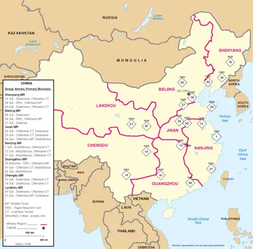 - ↑ Chapter 8, PLA Ground Forces, by Dennis J Blasko, in The People's Liberation Army as Organisation, RAND, CF182