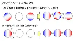La densidad electrónica en una molécula puede ser redistribuida por la proximidad de otro multipolo. Los electrones se acumularán en el lado de la molécula que encara a la carga positiva y se retirarán de la carga negativa. Entonces, puede producirse un multipolo transiente por una molécula polar cercana, o incluso por un multipolo transiente en otra molécula apolar.
