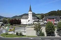 Se encuentra ubicada al norte del estado, cerca de la ciudad de Salzburgo —la capital del estado— y de la frontera con el estado de Alta Austria y Alemania.[2]