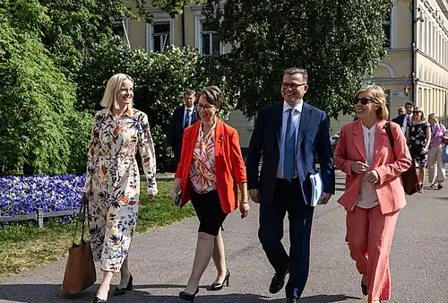 - ↑ «Suomelle uusi hallitus tiistaina 20. kesäkuuta». Valtioneuvosto. 19 de junio de 2023. Consultado el 19 de junio de 2023.