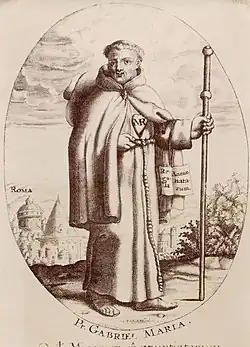 ![]() Gabriel María Nicolas caminando a Roma, para obtener la aprobación de la regla de las monjas anunciatas. | |||
