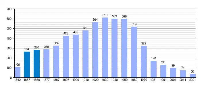 | Gráfica de evolución demográfica de Gallegos de Sobrinos[4] entre 1842 y 2021 |