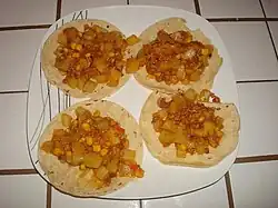 Gallos en tortilla de frijoles molidos con queso.