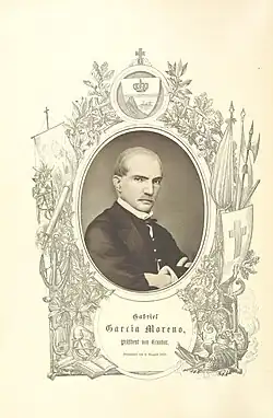 - ↑ a b Ayuso Torres, Miguel; Salazar, Álvaro R. Mejía (18 de mayo de 2023). Gabriel García Moreno, el estadista y el hombre. Reflexiones en el bicentenario de su nacimiento: Tiempo, pensamiento, huella e imagen de García Moreno. ESIC. pp. 124-125. ISBN 978-84-1170-259-1. Consultado el 9 de julio de 2023.