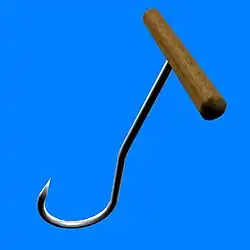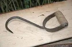 - Esta obra contiene una traducción derivada de «Hook (hand tool)» de Wikipedia en inglés, concretamente de esta versión, publicada por sus editores bajo la Licencia de documentación libre de GNU y la Licencia Creative Commons Atribución-CompartirIgual 4.0 Internacional.