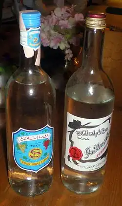 Las bebidas alcohólicas se consumen a diferentes ritmos en la comunidad asiria según la geografía.[3] Arak es una de las bebidas alcohólicas más populares y se puede destilar de uvas o dátiles. Es un alcohol fuerte, por lo que a menudo se sirve con comida, sabe a regaliz negro y es transparente hasta que se mezcla con agua, que luego se convierte en blanco lechoso. Las comunidades rurales asirias a menudo tradicionalmente elaboran su propia cerveza de trigo orgánico y producen su propio vino.