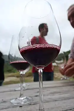 La bebida más característica de Asturias es la sidra de Asturias,[3] muy presente en la vida (en los chigres) y celebraciones de los asturianos. Por regla general esta bebida se escancia sobre vasos de gran tamaño (las medidas suelen ser de 12 cm de alto, 9 de boca y 7 de parte trasera). Desde el 12 de noviembre de 2002 la Sidra de Asturias es una Denominación de Origen Protegida, siendo muy frecuente encontrarla embotellada en botellas de cristal verde de forma característica y con tapón de corcho. La sidra es una bebida que tradicionalmente está presente en cuantos festivales, romerías o fiestas se celebren en el Principado, participando de una tradición gastronómica llamada espicha. La producción de vino es escasa en la región (se plantan pocas vides), aunque en el suroccidente de la comunidad se encuentra la Denominación de Origen Protegida Cangas (vino). La producción de orujos es igualmente muy escasa.