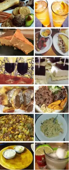 | Platos: | Gallo pinto, casado, picadillos, macarrones, empanadas, tortillas, olla de carne, chicharrones, etc. | |