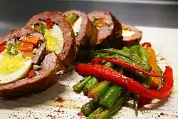 De gran importancia son las hortalizas como el tomate, el chile dulce, la remolacha,[51] el repollo, la lechuga, los berros,[52] las espinacas, la verdolaga, el puerro, las lentejas, la mostaza y los guisantes, que se utilizan en guisos, dips, salsas, encurtidos, ensaladas y acompañamientos, o para sazonar los más distintos platillos.[53] Las vainicas se usan para hacer picadillos, o bien, se las envuelve en huevo para preparar barbudos. Con los cubaces (frijoles de gran tamaño) se cocinan diversos platillos, entre los más populares están el chifrijo y los estofados de cubaces con cerdo. El chile relleno es un platillo hecho a base de chile dulce que se rellena con carne molida, especias y hierbas. En algunas regiones del país, flores como las del itabo, el madero negro o el poró se aprovechan para preparar picadillos,[54] así como las hojas del chicasquil.