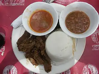 A veces también se come allí Nshima, un plato a base de maíz mezclado con verduras y carne (o pescado).