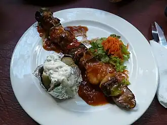 Brocheta de caza (cocodrilo, kudú y órix) | ||