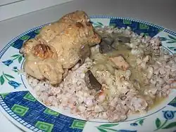 - Kasha hrechana zi shkvárkamy: alforfón con cortezas de cerdo y cebolla.