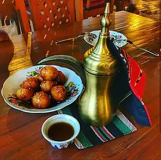Las bebidas populares son el café y el té, que pueden complementarse con cardamomo, azafrán o menta para darle un sabor distintivo.[3]