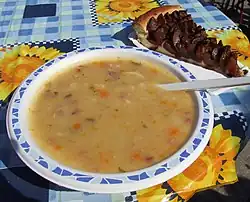 - Grumbeersupp un Quetschekuche es sopa de patata con pastel de ciruelas.
