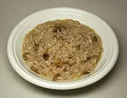 - Polenta, mash de harina de maíz hecha con diversos grados de espesura según el uso del producto final, y a menudo condimentada con queso y mantequilla. Se sirve a veces con salsa de carne o fiambre.