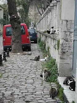 Estambul alberga una población considerable de gatos callejeros (en turco: sokak kedisi, "gato callejero"), con estimaciones que van desde cien mil hasta más de un millón de gatos cimarrones. Muchos ciudadanos turcos ven a los animales de la calle como mascotas de propiedad comunal, en lugar de perros callejeros tradicionales, y el país tiene una política general de no matar ni capturar.[1]