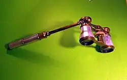 Son de destacar los gemelos de teatro, que suelen tener una empuñadura extensible para facilitar su uso. Están decorados lujosamente, constituyendo más piezas de joyería que instrumentos ópticos.