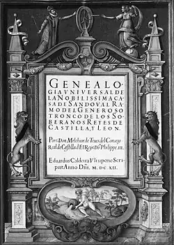 | Otros nombres | Genealogia universal de la nobilissima casa de Sandoval, ramo del generoso tronco de los soberanos reyes de Castilla y Leon, por Don Melchior de Teves, del Consejo Real de Castilla d'El Rey Don Philippe III | |