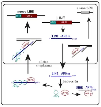 En el genoma humano se detectan más de 280 000 elementos reguladores, aproximadamente un total de 7Mb de secuencia, que se originaron por medio de inserciones de elementos móviles. Estas regiones reguladoras se conservan en elementos no exónicos (CNEEs), fueron nombrados como: SINE, LINE, LTR.[2] Se sabe que al menos entre un 11 % y un 20 % de estas secuencias reguladoras de genes, que están conservadas entre especies, fue formado por elementos móviles.