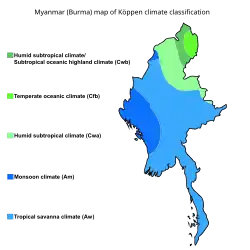 - ↑ «Climate-Burma». Climates to travel. World Climate Guide (en inglés). Consultado el 1 de noviembre de 2018.
