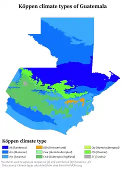- ↑ «Climate-Guatemala». Climates to travel, World Climate Guide. Consultado el 5 de octubre de 2018.