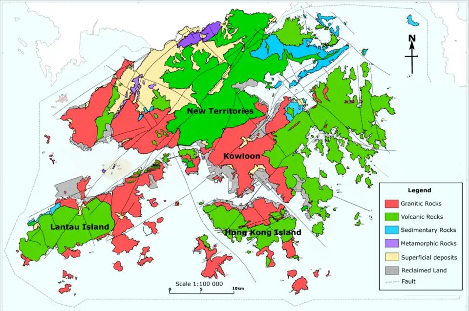 - ↑ «The Geology of Hong Kong (Interactive On-line)». www.cedd.gov.hk. Consultado el 16 de noviembre de 2018.