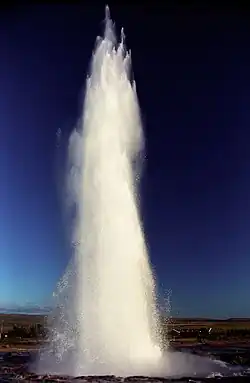 Existen unas 250 zonas geotermales de este tipo con un total de, aproximadamente, 800 fuentes termales. Algunas son manantiales con importantes chorros o géiseres; el más famoso de ellos es el Gran Geysir en Haukadalur en Islandia meridional, del cual deriva la palabra géiser. Otro famoso géiser cercano al Gran Geysir es el Strokkur.