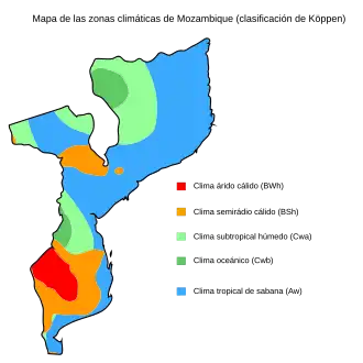 - ↑ «Clima-Mozambique». Climates to travel. World Climate Guide (en inglés). Consultado el 18 de enero de 2018.
