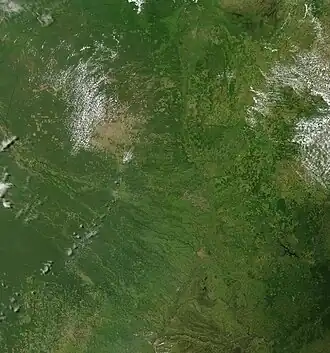 El terreno consta de planicies pastosas, colinas boscosas al este del río Paraguay; la región del Gran Chaco al oeste del río Paraguay mayormente bajo, pantanoso cerca del río, y bosques secos y arbustajes espinosos.