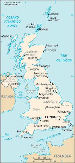 El Reino Unido de Gran Bretaña e Irlanda del Norte (en inglés: United Kingdom of Great Britain and Northern Ireland) es un Estado de Europa occidental que comprende la totalidad de la isla de Gran Bretaña y 1/6 de la isla de Irlanda (Irlanda del Norte). Limita al norte con el océano Atlántico y el mar del Norte y al sur con el canal de la Mancha, al otro lado del cual está Francia. Es el centro de la Mancomunidad de Naciones. Se formó por la sucesiva unión al reino de Inglaterra de Gales (1536), Escocia (1603) e Irlanda del Norte (Úlster, 1922). Además de la isla de Gran Bretaña y la parte noreste de Irlanda, su territorio incluye otras islas del archipiélago británico: Wight, Man, Anglesey, Hébridas, Orcadas y Shetland) y las pequeñas islas Anglonormandas, frente a la península francesa de Cotentin.