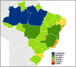 - ↑ a b c Instituto Brasileiro de Geografia e Estatística (IBGE). «Área Territorial Oficial - Consulta por Unidade da Federação». Archivado desde el original el 9 de abril de 2014. Consultado el 9 de abril de 2014.