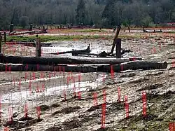 - ciertas áreas agrícolas (por ejemplo, como parte de la conversión de una granja a agricultura ecológica o para la restauración de prados, bocages o zonas tampón —como franjas de pasto—,[6] más ricas en biodiversidad o funcionalmente más eficientes para la protección contra inundaciones o para la restauración de un suelo con más humus y de mayor estabilidad frente a la erosión, la salinización, la eutrofización o la degradación del suelo).