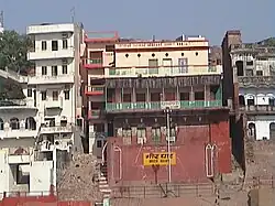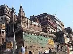 | 16 | Ghat Shivala | Parece una fortaleza que domina el Ganges. También conocido como Ghat Kali Mahal. Pertenece al raja de Benarés. Tuvo un papel histórico durante la colonización ya que el raja Chait Singh, prisionero de los ingleses, se escapó una noche por una de las ventanas del edificio, en 1781, atravesó el Ganges y pudo llegar a Ramnagar después de la famosa batalla contra Warren Hastings.