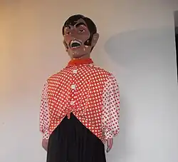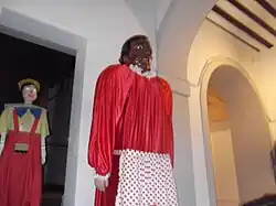 | Denominación: El negrazo o el negro con moño. Peso: 50 kg. Altura: 3,80 m. Antigüedad: año 1902, figura renovada en 1997. |