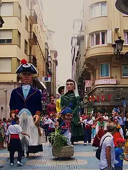 Finalmente en los años 70 aparecieron de manera intermitente, al menos dos gigantes, uno era el árabe, de tez morena, vestido con chaleco negro, fajín rojo y con camisa y faldas blancas y un turbante del mismo color sobre la cabeza. Tras él, desfilaba una gitana con vestido de faralaes de lunares y una mantilla sobre los hombros. Acompañando a los gigantes, asustando a los niños, desfilaban cabezudos, entre ellos, Harpo y Groucho, de los hermanos Marx, un chino, un leñador barbudo y un sonriente payaso.