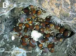 - ↑ «A new genus of large hydrothermal vent‐endemic gastropod (Neomphalina: Peltospiridae)». Zoological Journal of the Linnean Society: 175. 2015.