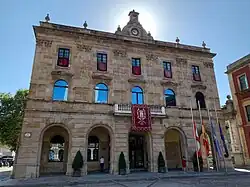 Entre finales del siglo XIX y comienzos del XX la consolidación de una pujante burguesía propició un nuevo modelo de urbanismo. Los miembros de esta clase social impulsaron la construcción de edificios residenciales de mayor superficie y fachadas llamativas —algunos de ellos influenciados por el modernismo o art nouveau—, además de los equipamientos que exigían sus relaciones sociales y comerciales.[47] Algunos ejemplos ya desaparecidos eran el antiguo teatro Jovellanos, el teatro-circo Obdulia[63] o el Gran Hotel Malet.[64] Aún siguen en pie la plaza de toros de El Bibio y el teatro Dindurra, actual teatro Jovellanos. Los arquitectos Miguel García de la Cruz y Manuel del Busto tuvieron una gran relevancia en cuanto a número de obras en la ciudad.[65]
