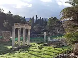 • el xustós, pista cubierta, pórticos bajo los cuales los atletas se ejercitaban en invierno,