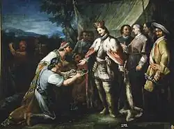 - Cuadro de gran formato de San Pedro curando a un cojo para la iglesia de San Pedro de Menagaray, Álava (1764).