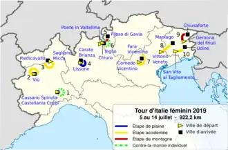 La 30.ª edición del Giro de Italia Femenino (oficialmente: Giro d'Italia Internazionale Femminile o también conocido como Giro Rosa) se disputó entre el 5 al 14 de julio de 2019 con inicio en la localidad de Cassano Spinola y final en la ciudad de Udine en Italia. La carrera constó de un total de 10 etapas sobre un recorrido de 922,2 km.