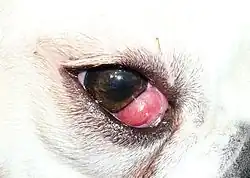 En los perros, es común una afección del ojo conocida como ojo cereza, que consiste en el prolapso de la glándula palpebrae tertiae superficialis citada en algunos textos como sinónimo de glándula de Harder, aunque en realidad esta es la palpebrae tertiae profunda.