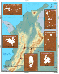 - ↑ a b Fuentes Delgado, José Eduardo; Santana Rodríguez, Luis Marino (6 de enero de 2025). «Evolución de los glaciares tropicales de Colombia (2010-2023) utilizando herramientas geoespaciales». Revista de Geografía Norte Grande 91: 1-27. doi:10.4067/S0718-34022025000200101.