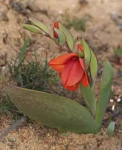 Gladiolus equitans es una especie de gladiolo originario de las colinas rocosas de Namaqualand, Sudáfrica.[1]