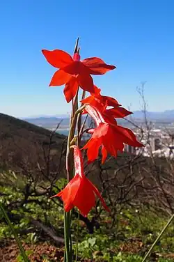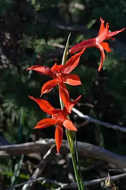 - ↑ «Gladiolus watsonius». Conservatorio y Jardín Botánico de Ginebra: Flora africana. Consultado el 8 de abril de 2015.