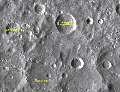 Glazenap es un cráter de impacto que se encuentra en la cara oculta de la Luna, situado al sursudoeste de las paredes de la enorme llanura amurallada del cráter Mendeleev, y al noroeste del cráter Pannekoek.