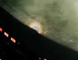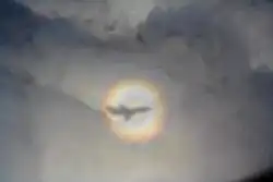 Una gloria (o anthelion) es un fenómeno óptico producido por la luz retrodispersada (una combinación de difracción, reflexión y refracción) sobre su fuente por una nube de diminutas gotas de agua de tamaño uniforme. Una gloria tiene múltiples anillos coloreados. La mayor parte de la gente sólo ve un anillo. La gloria, sin embargo, puede mostrar varios anillos cuando la nube se compone de gotas lo bastante uniformes. A veces los anillos fluctúan ampliamente en tamaño. Esto ocurre, por ejemplo, cuando un avión sobrevuela un banco de nubes y su gloria viene y va sobre ellas.[1]